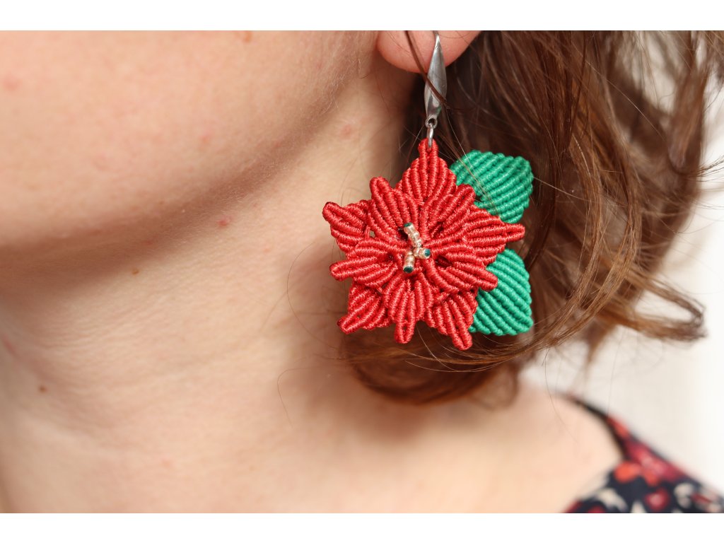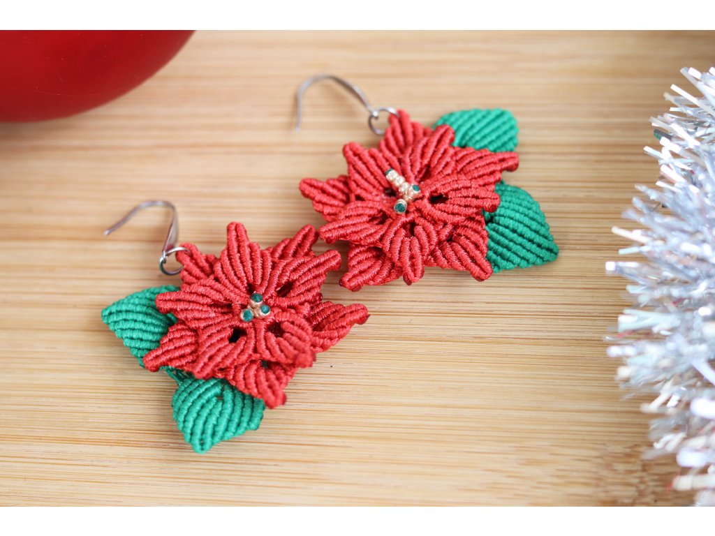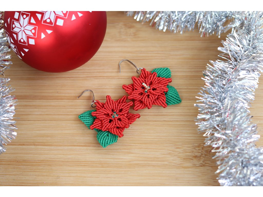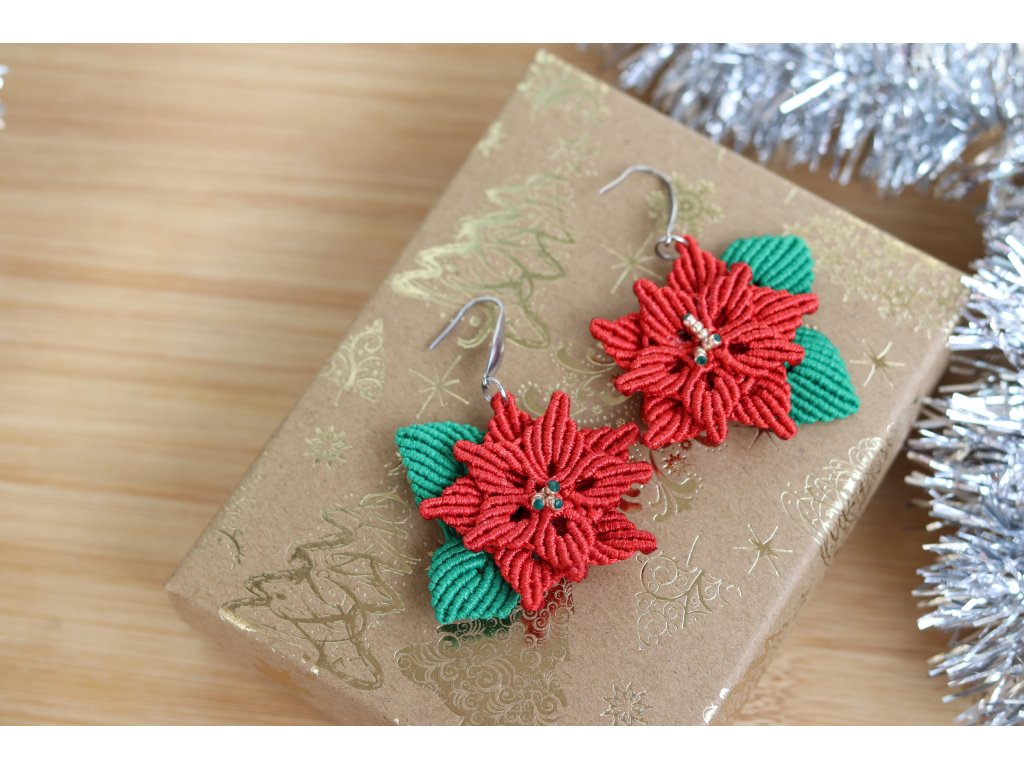 " Vianočné náušnice Vianočná ruža - ručne viazané s láskou od Betani, ideálne na sviatočnú atmosféru aj ako darček pod stromček. "